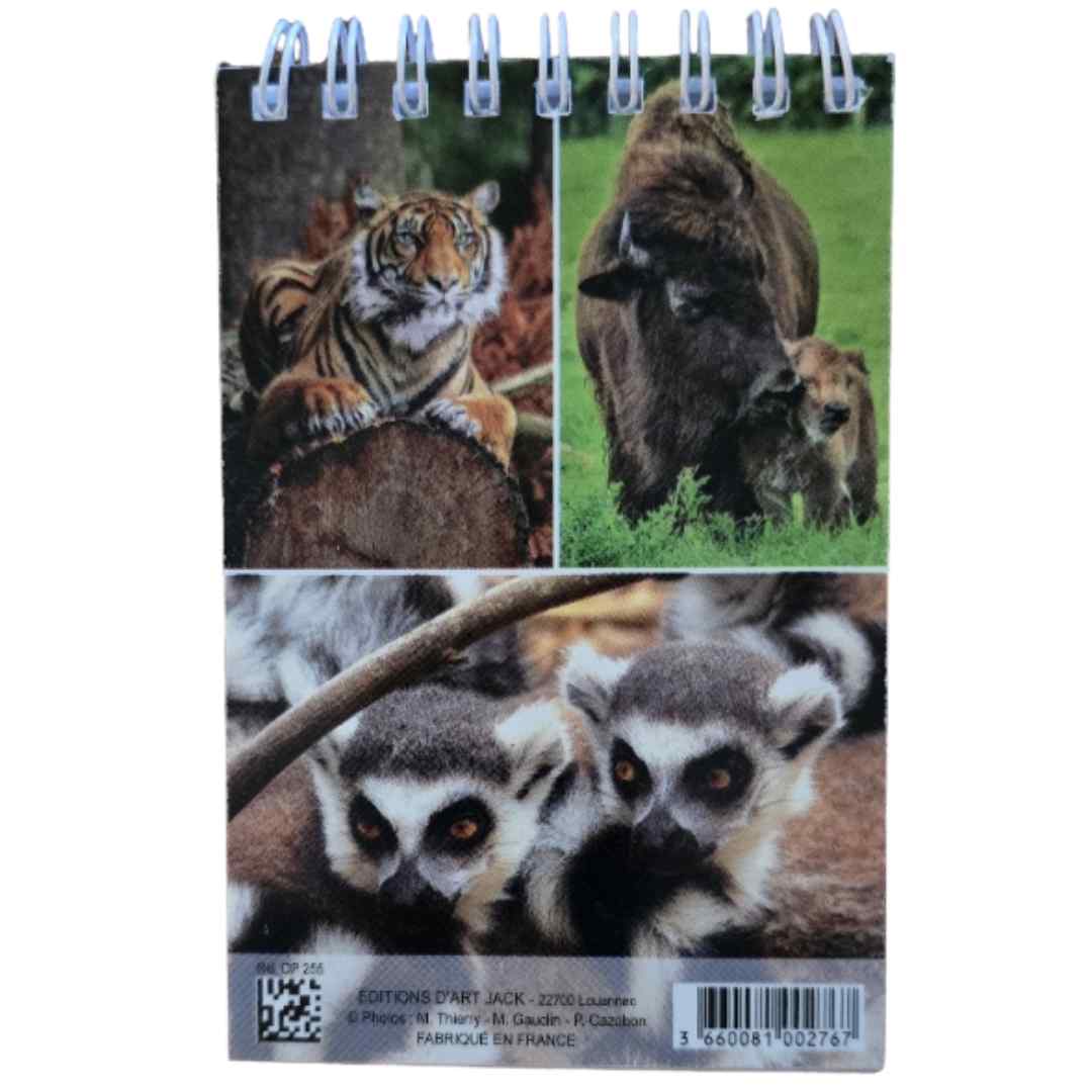 Feuilles intérieures décorées avec tigre blanc ou girafe en filigrane selon la couverture.
